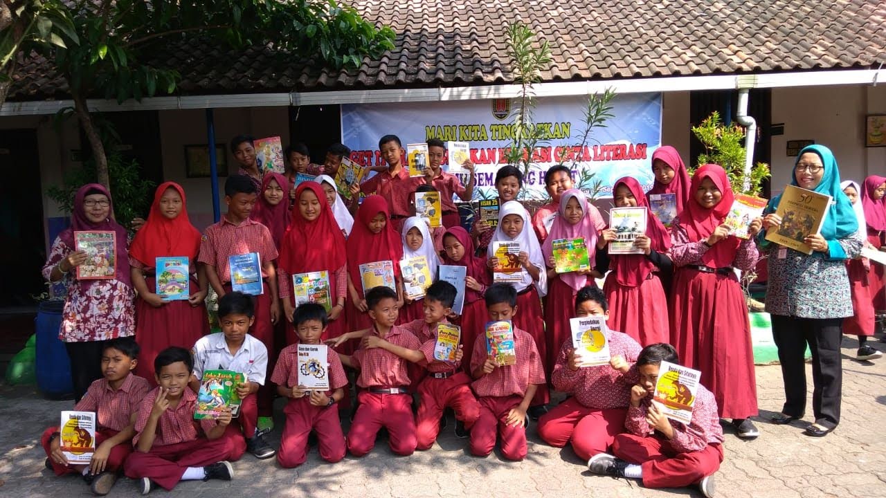 Pelaksanaan Literasi di halaman SDN manyaran 03.